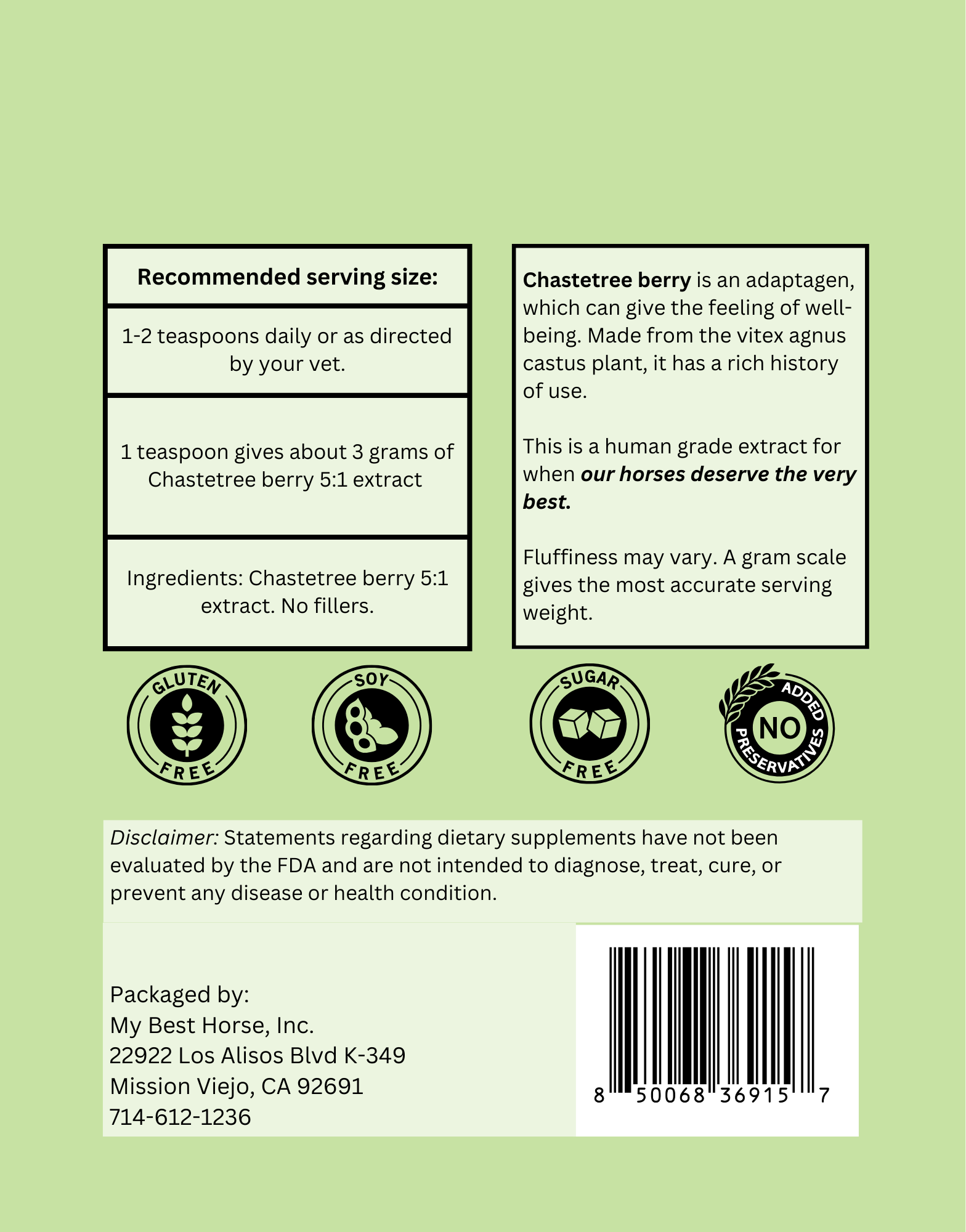 Chastetree Berry 5:1 is a 5X concentration powder, so that you have less bulk when feeding it.